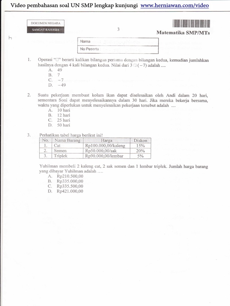 Soal Un Smp 2015/2016 - Naskah Soal UN Bahasa Indonesia SMP/MTs Asli Tahun 2015 ... : Id.pinterest.com di sini ada kumpulan latihan prediksi dan tryout contoh soal un matematika smp kelas 9 dan pembahasannya bisa di download dalam pdf.